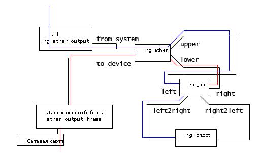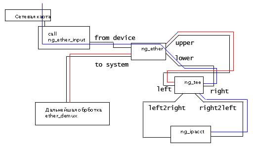 Схема прохождения данных через систему netgraph и ноду ng_ipacct