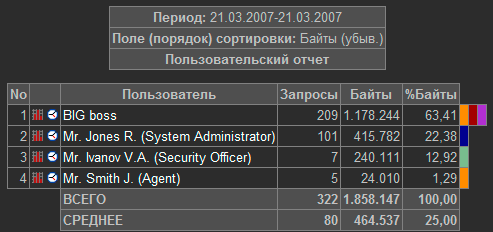 Про лимиты. Помнится давным-давно, когда еще не было безлимитных тарифов, столкнулся с такой проблемой. Если юзер начнет тянуть файл гига на четрые то пока он его не докачает или не начнется докачка, вследствие обрыва соединения, информация о скаченном объеме в логах сквида не отобразится. Поэтому при ограничении трафика, допустим 1,5 гб, лимиты сработают уже только при многократном их превышении. Наблюдательные юзеры чем успешно и пользовались. При оставшемся трафике несколько мегов ставили на закачку в один поток что-нибудь объемное мегов на 700 и если канал до сервера хороший файл успешно закачивался Может сейчас этой проблемы в сквиде и не существет, тогда я ее решил с помощью ipastat для ipfw. Считает каждый пакетик который идет через файервол и лимиты срабатывают на ура практически в реальном времени.