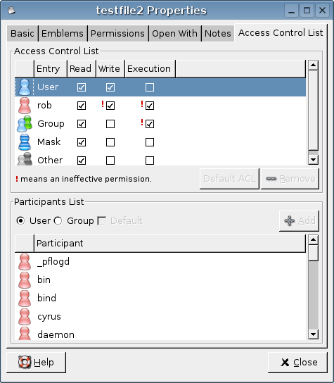 Хотя ACL не изменяют внутренние разрешения Unix ((r)ead, (w)rite и e(x)ecute),
