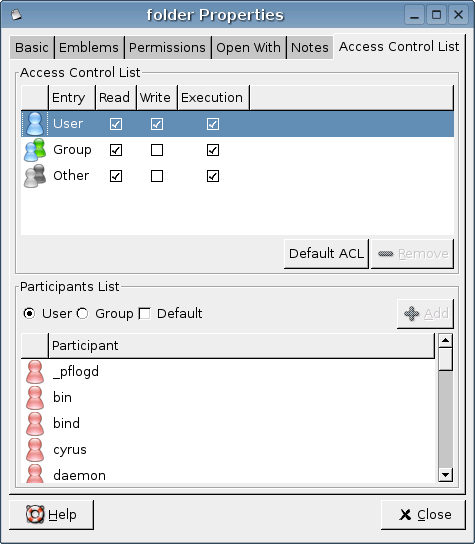 User, Group и Other описывают непосредственный доступ к каталогу и поэтому представляют первый тип ACL , или