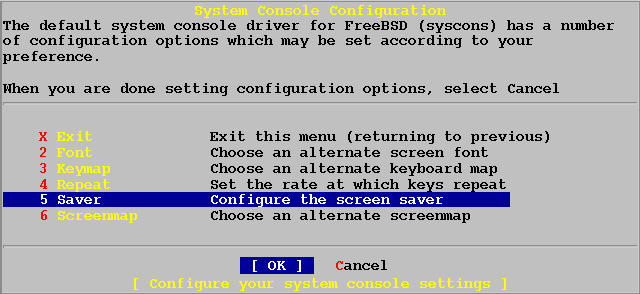 В меню Заставки, выбирите [OK] и нажмите ENTER чтобы вернуться в Меню Выбора Опций Системной Консоли.