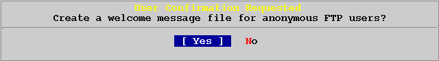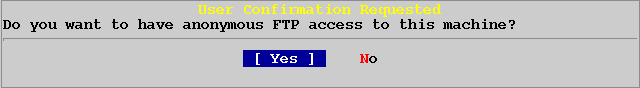 Если вы выбираете [Yes], тем самым разрешаете анонимный доступ по ftp к своей системе. Вы должны быть уверены в безопасности своей системы разрешая такой доступ.