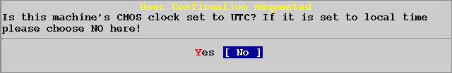 Если часы CMOS вашей машины установлены на локальное время, выбирите [No] и нажмите ENTER.