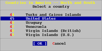 Выбирите соответствующую страну и нажмите ENTER. Это лишь часть диаграммы меню выбора страны.