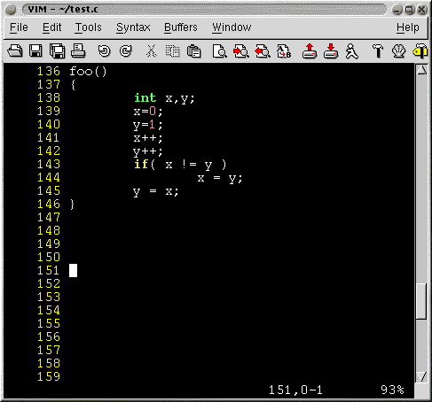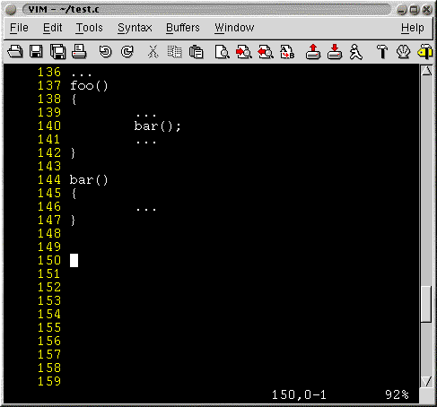 For some reason you've forgotten what y and z are and want to go to their declaration double quick. One way of doing this is by searching backwards for y or z. VIM offers a simpler and quicker solution. The gd keystroke stands for Goto Declaration. With the cursor on "y" if you hit gd the cursor will take you to the declaration :- struct Y y;.