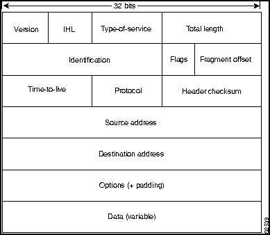 IP является основным протоколом Уровня 3 в комплекте протоколов Internet. В дополнение к маршрутизации в об'единенных сетях, IР обеспечивает фрагментацию и повторную сборку дейтаграмм, а также сообщения об ощибках. Наряду с ТСР, IP представляет основу комплекта протоколов Internet. Формат пакета IP представлен на Рис. 18-2.