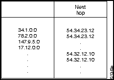 Протоколы маршрутизации IP-это динамичные протоколы. При динамичной маршрутизации (dynamic routing) запросы о маршрутах должны рассчитываться программным обеспечением устройств маршрутизации через определенные интервалы времени. Этот процесс противоположен статической маршрутизации (static routing), при которой маршруты устанавливаются администратором сети и не меняются до тех пор, пока администратор сети не поменяет их. Таблица маршрутизации IP состоит из пар "адрес назначения/следующая пересылка". Образец записи данных, показанный на Рис. 18-7, интерпретируется как имеющий значение "добраться до сети 34.1.0.0. (подсеть 1 сети 34), следующей остановкой является узел с адресом 54.34.23.12."