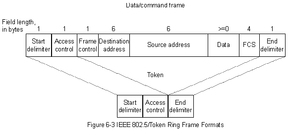 Сети Token Ring определяют два типа блока данных: блоки маркеров и блоки данных/блоки команд. Оба формата представлены на Рис.6-3.