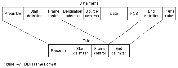 Форматы блока данных FDDI (представлены на Рис. 7-7) аналогичны форматам Token Ring.