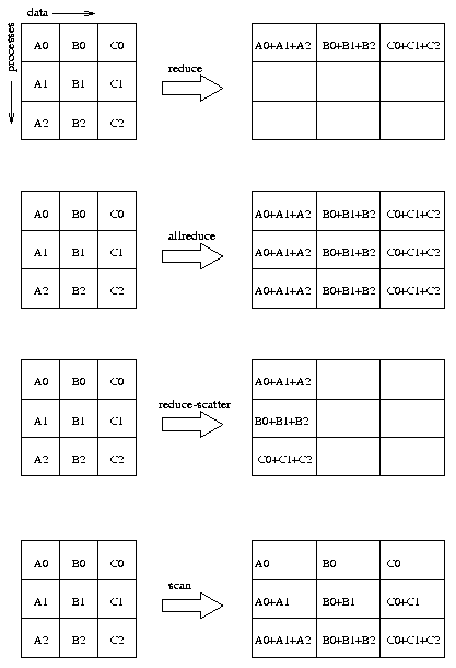 Коллективные - должны быть вызваны ВСЕМИ ветвями-абонентами того коммуникатора, который передается им в качестве аргумента. Несоблюдение для них этого правила приводит к ошибкам на стадии выполнения программы (как правило, к повисанию).