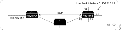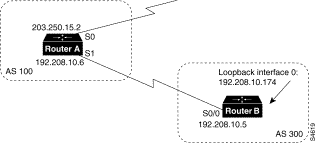 !Router B loopback interface 0 ip address 150.212.1.1 255.255.0.0 ! router bgp 100 neighbor 190.225.11.1 remote-as 100 neighbor 190.225.11.1 update-source loopback 0