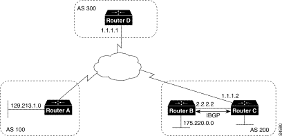 ! Router A router bgp 100 neighbor 129.213.1.1 remote-as 200