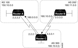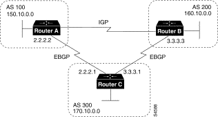 !Router B loopback interface 0 ip address 180.225.11.1 router bgp 300 neighbor 129.213.1.1 remote-as 100 neighbor 129.213.1.1 ebgp-multihop neighbor 129.213.1.1 update-source loopback 0