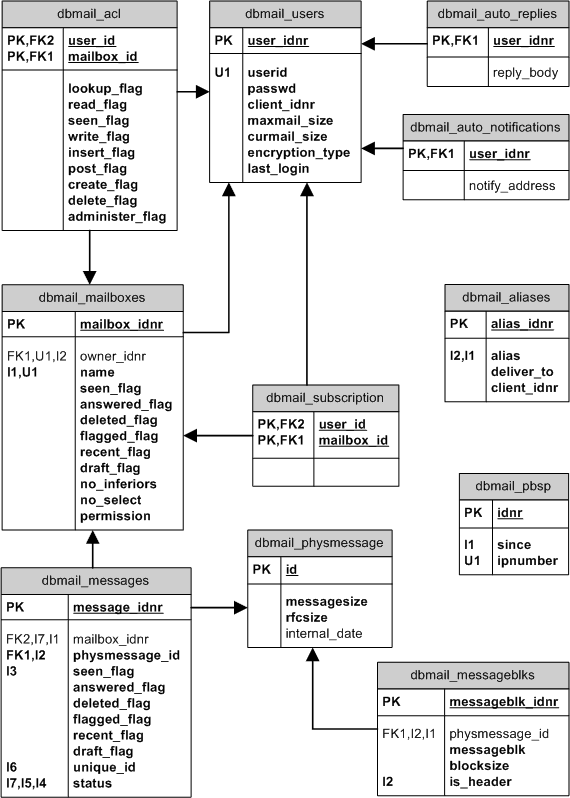 При этом администратор почтовой системы может задействовать различные механизмы, предоставляемые СУБД (при условии, что выбранная им СУБД это позволяет), например: