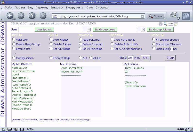 n dbmail-users - инструмент для управления пользователями и их псевдонимами (возможно, многим из вас будет привычнее термин alias).