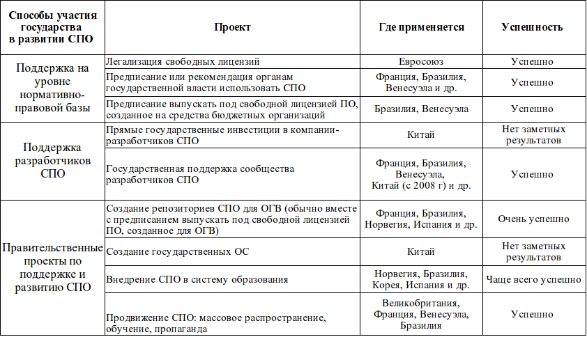 процесса внедрения СПО и развития российских разработчиков СПО,