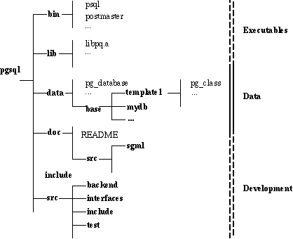 Расположение файлов Postgres показывает как размещается дистрибутив Postgres, если он установлен с настройками по умолчанию. Для простоты, мы предполагаем, что Postgres установлен в каталог /usr/local/pgsql. Следовательно, если ты увидел каталог /usr/local/pgsql, то ты должен заменить его на каталог, в котором установлен Postgres на самом деле. Все команды Postgres устанавливаются в каталог /usr/local/pgsql/bin. Следовательно, тебе нужно добавить этот каталог в командный путь shell. Если ты используешь один из Berkeley C shell, например csh или tcsh, то добавь
