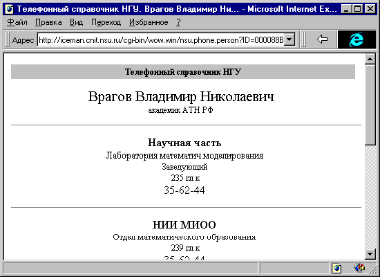БД "Телефонный справочник НГУ" была создана в СУБД "Paradox4.5" и состоит из трех таблиц:SPIS.DB, STR.DB, PODR.DB.