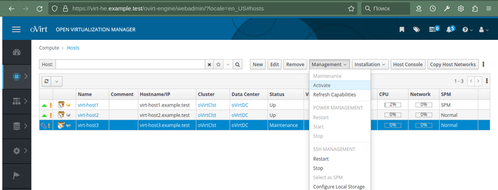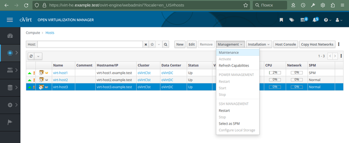 > oVirt состоит из двух основных компонентов - oVirt engine и oVirt node.